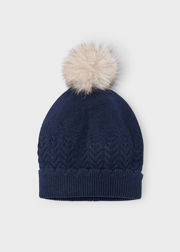 Hat for girls made from warm, flexible materials which guarantees a perfect fit and maximum comfort to protect them from the cold. Knitted fabric, soft and pleasant to the touch. Decorative elements: pompom.