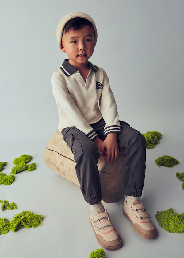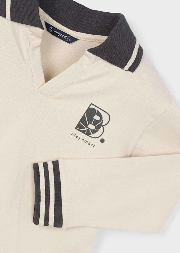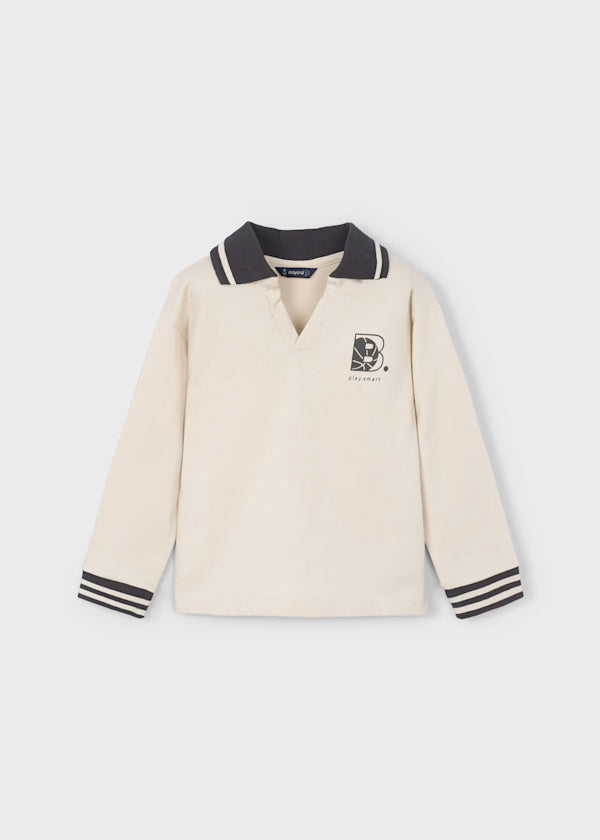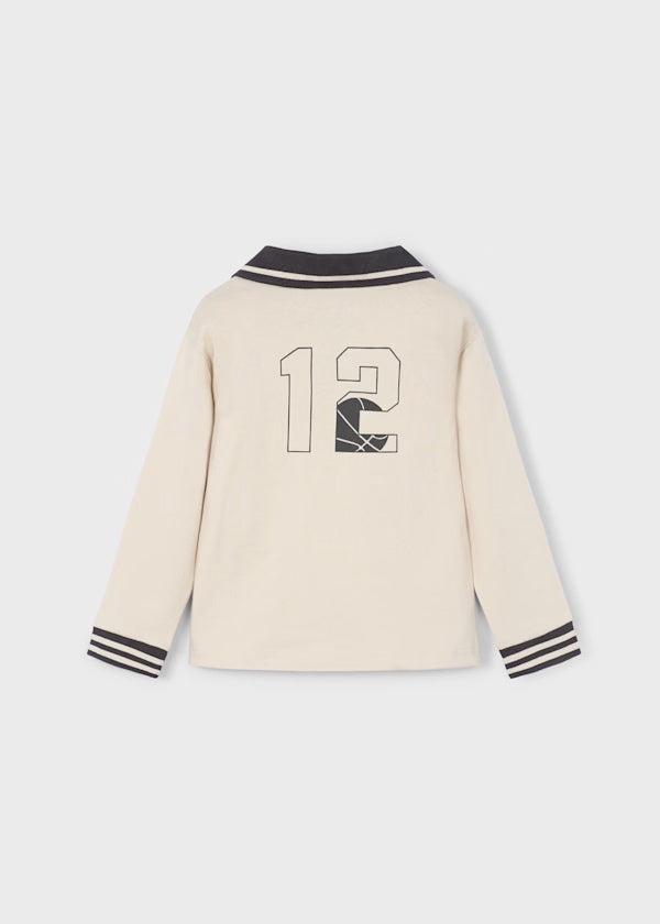 Long sleeved Polo shirt for boys. Classic polo shirt collar. Decorative elements: design on the front and back of the item, Print.
