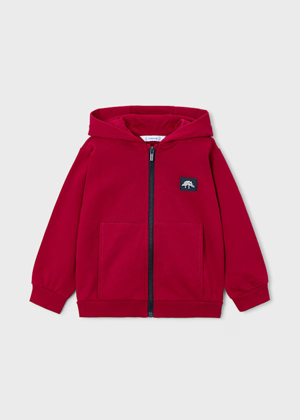 Long sleeved Hoodie for boys. Hooded collar. Front, central zip fastening. Functional front pockets.