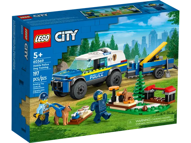 Kids and canine fans aged 5+ will love this LEGO® City Mobile Police Dog Training (60369) toy playset. Packed with inspiration for imaginative play, it comes with a K9 SUV, trailer and 3 dog-training apparatus, including a seesaw, jump bar and stepping paws. Just add the police officers and dog and puppy figures and let the fun begin. Includes an easy-to-follow pictorial printed building guide and the LEGO Builder app – a digital building companion with intuitive zoom and rotate tools that enable kids to visualize the finished model from all angles as they build. LEGO City Police playsets deliver an enjoyable build-and-play experience with feature-rich buildings, realistic vehicles and fun characters that inspire imaginative, open-ended play.