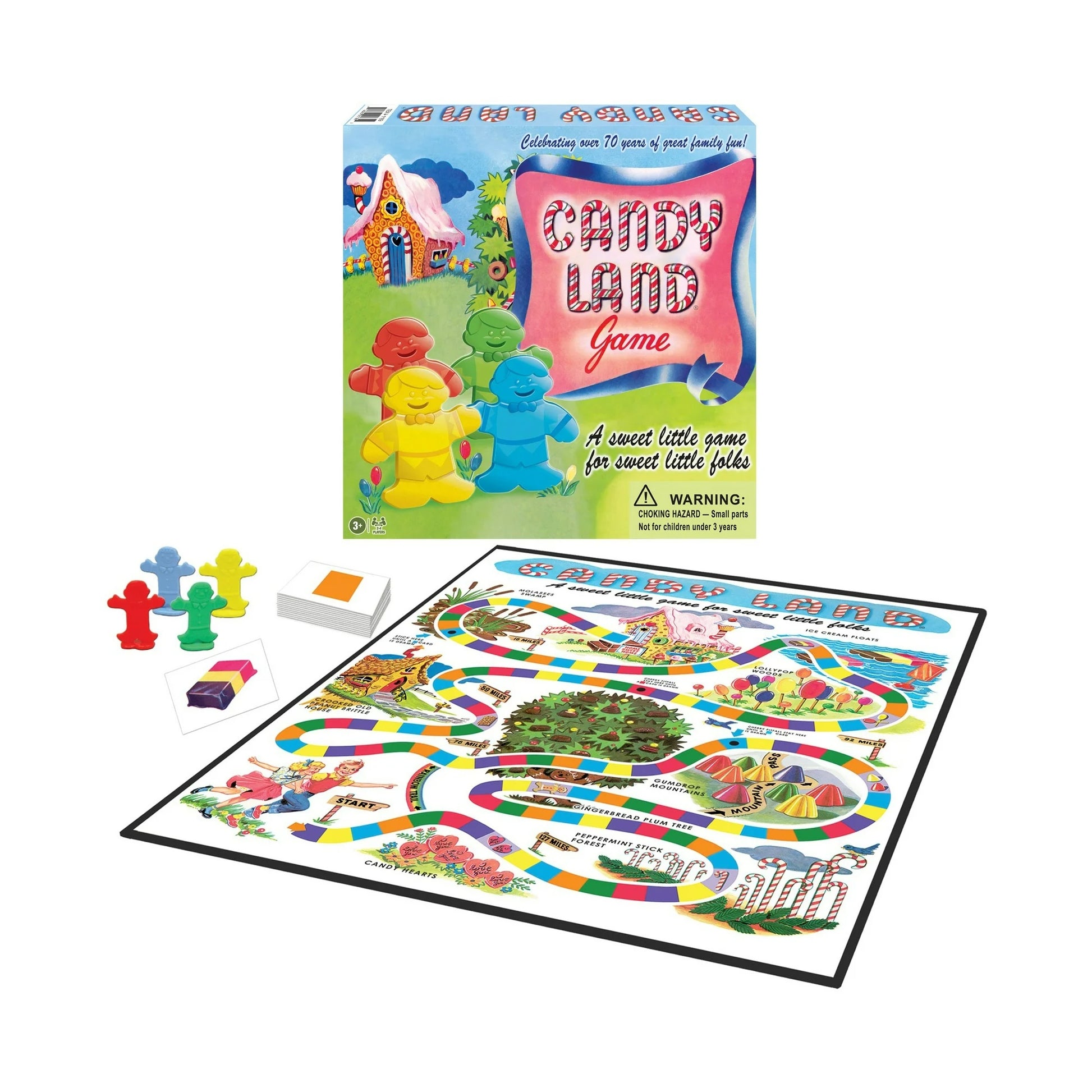 - Game Contents: Includes a bi-fold heavy-duty gameboard, 4 plastic gingerbread men movers, a deck of 64 cards, and instructions with "The Story Of Candy Land".
