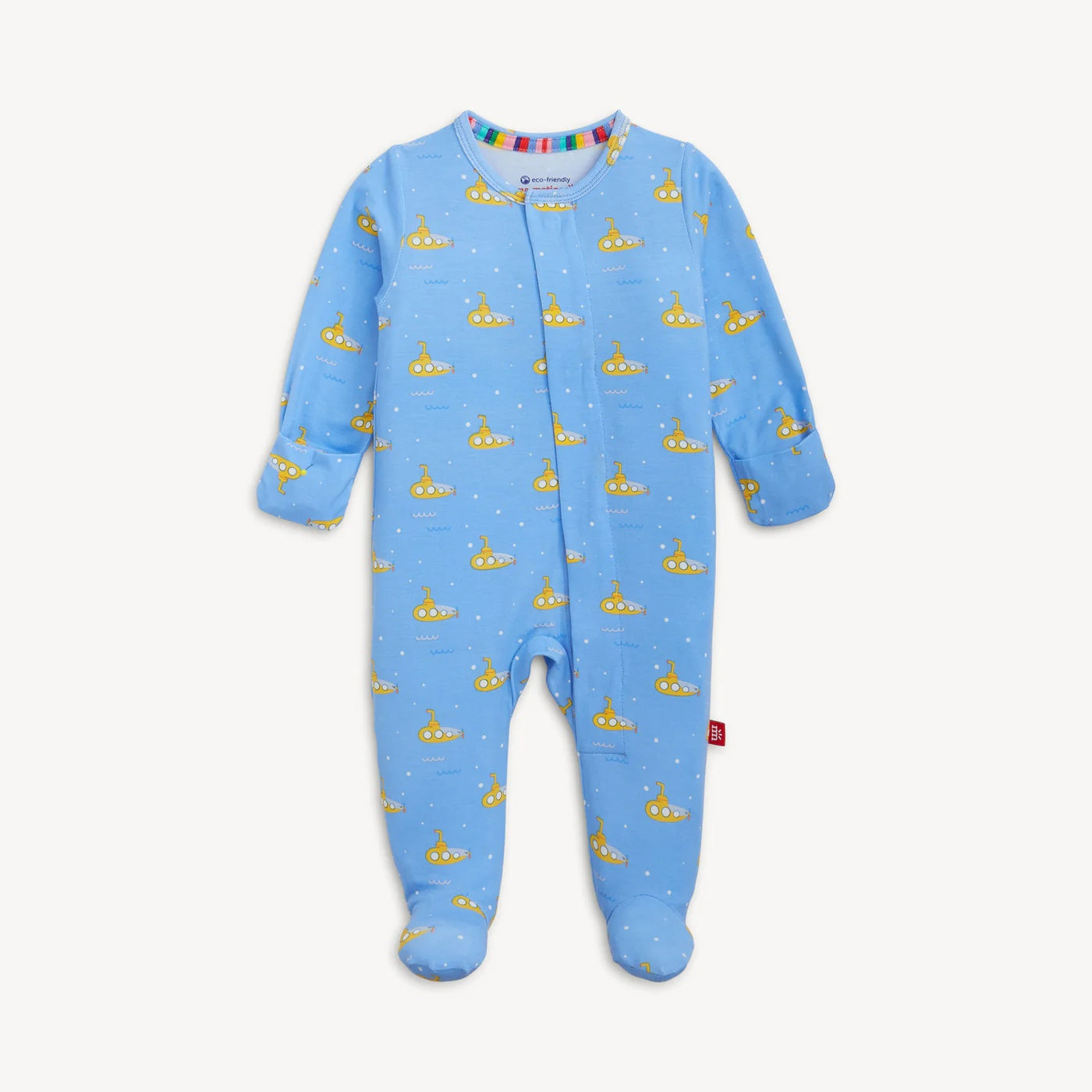 - Magnetic closures: magnets line the seam from the neck to upper thigh for sizes up to 0-3m & from neck to crotch for sizes 3-6m and up.