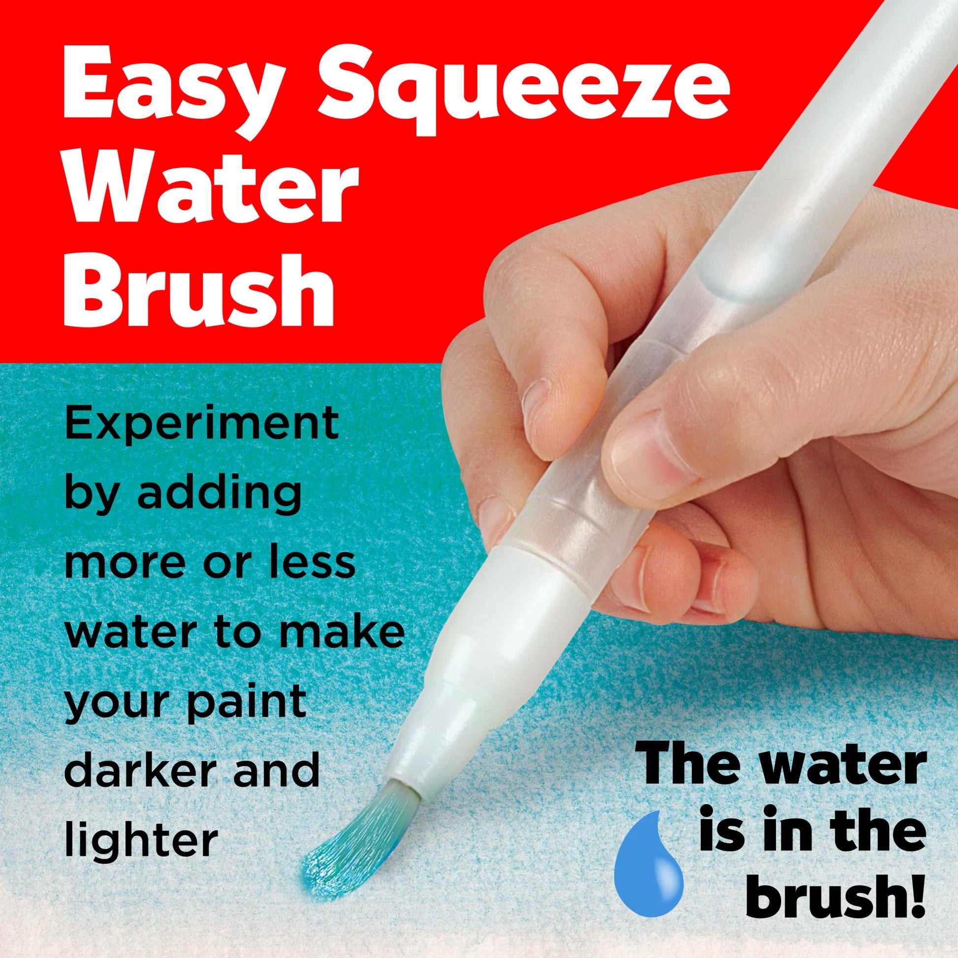 Girls and boys will enjoy the brilliant and vibrant watercolors that make their artwork pop! The easy-squeeze water brush makes painting easier for tiny hands, while the collapsible water cup and watercolor painting mat makes cleanup for parents a breeze.